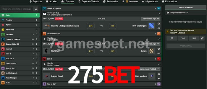 O 275bet oferece uma grande seleção de opções de apostas em e-sports com probabilidades competitivas